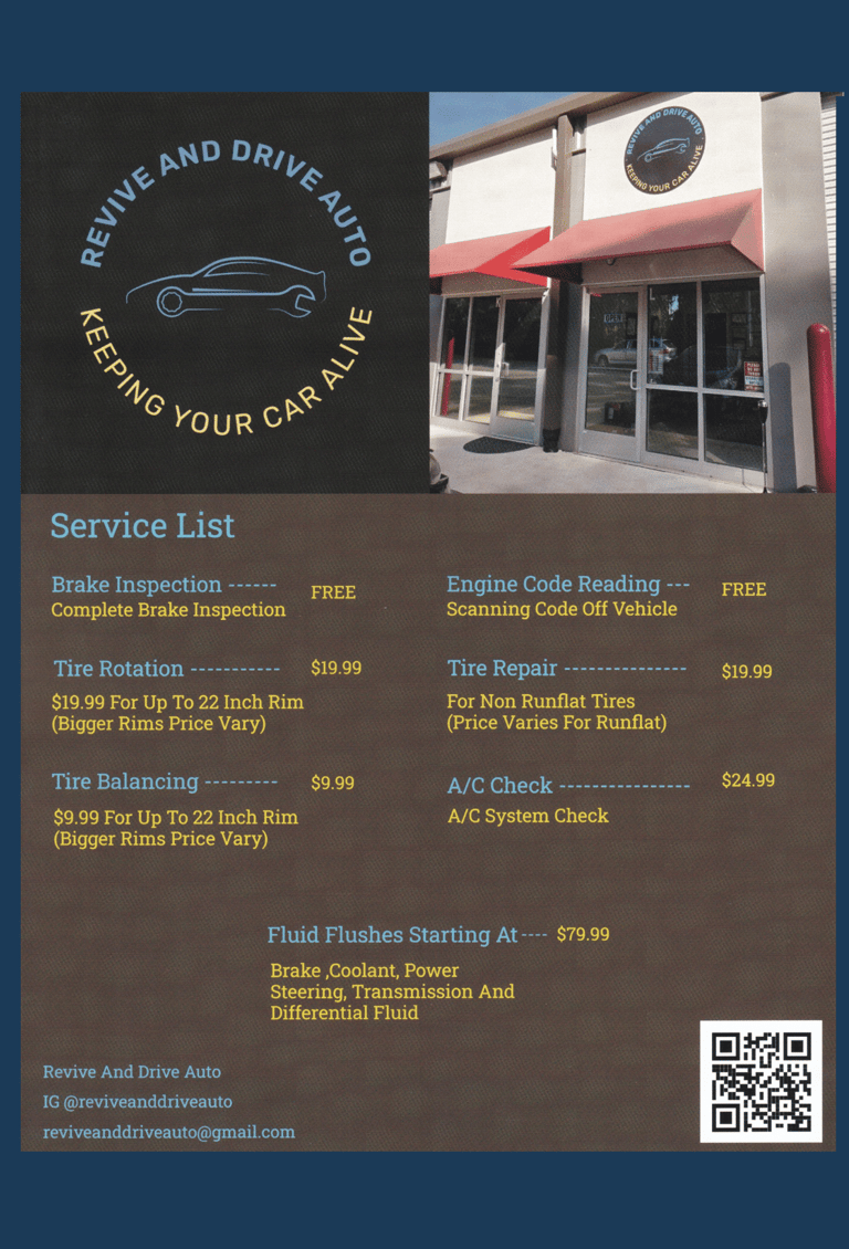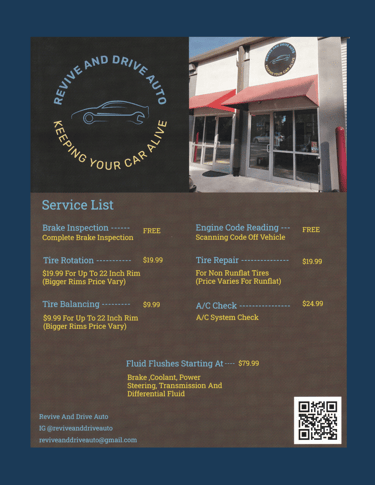 We do it all from oil changes to a/c diagnostics, engine repairs, suspension, brakes , tire installations and troubleshooting.